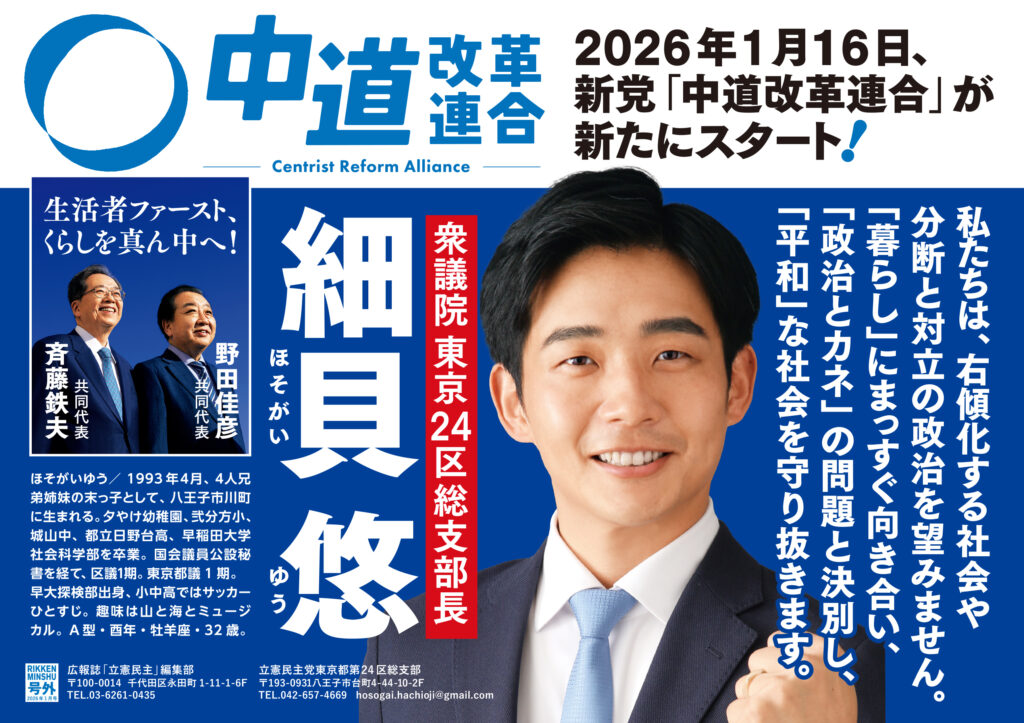 「暮らし」にまっすぐ向き合い、「政治とカネ」の問題と決別し、「平和な社会を守り抜きます」